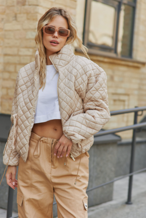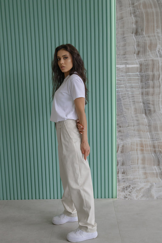 Gerade geschnittene Hose mit mittelhohem Bund in Beige