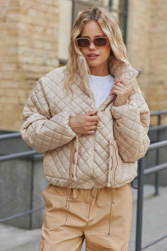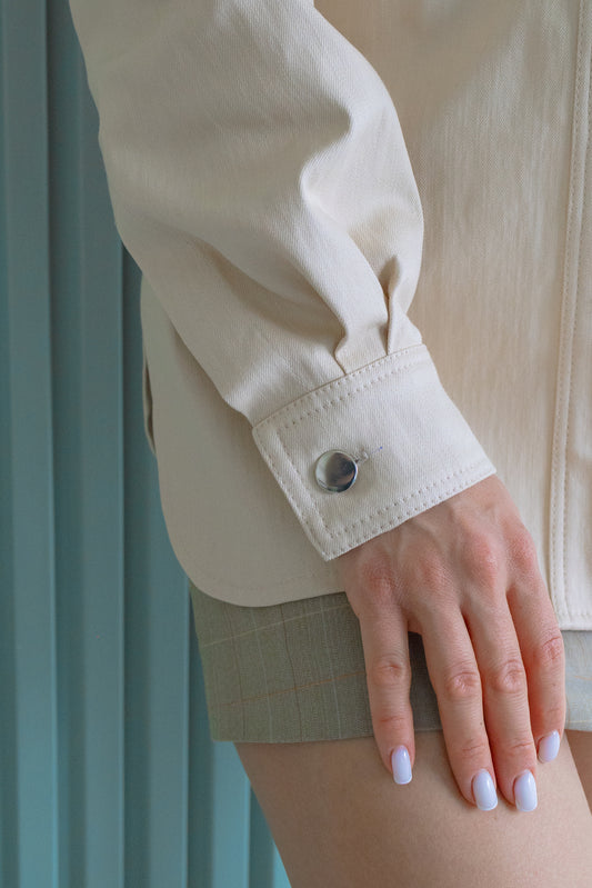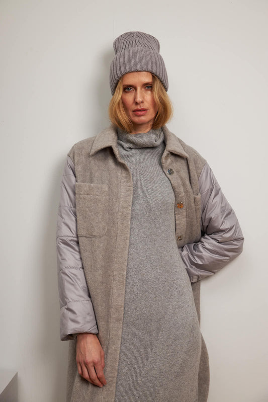 Kurzer Trenchmantel in Lederoptik in Hellbeige