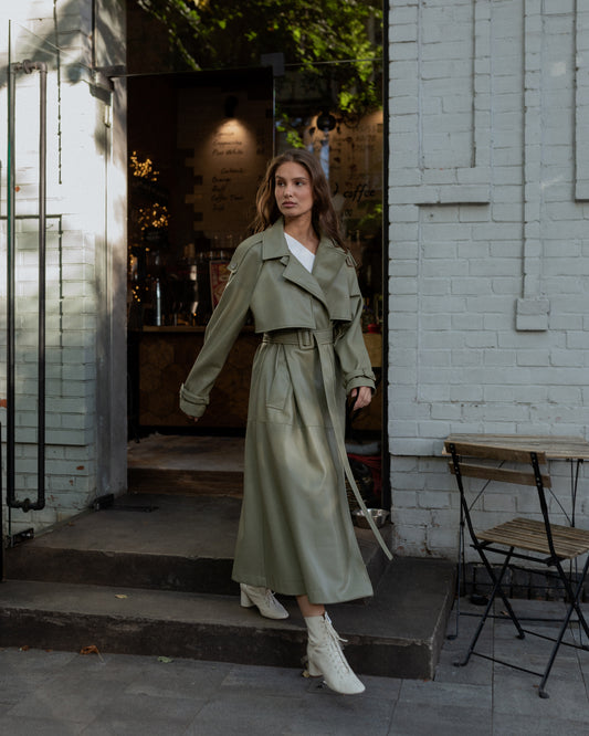 AusverkauftTrenchmantel in Lederoptik in Hellgrün