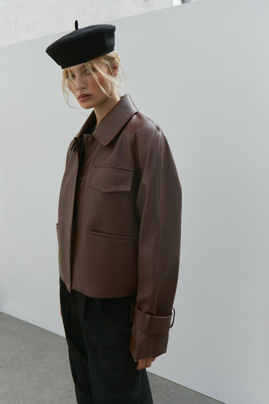 Kurze Trenchjacke in Lederoptik in Bordeauxrot