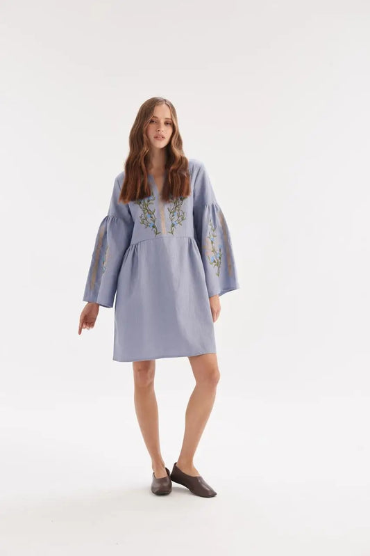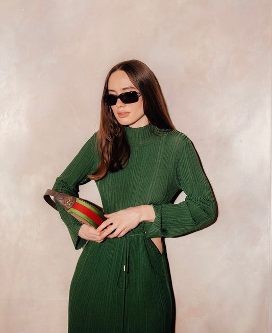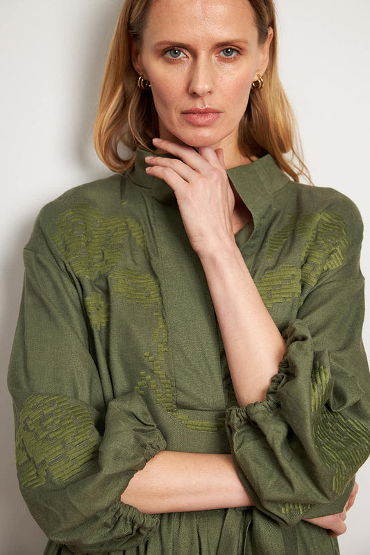 AusverkauftMidikleid mit Stickerei in Pistaziengrün