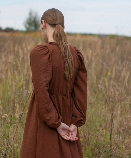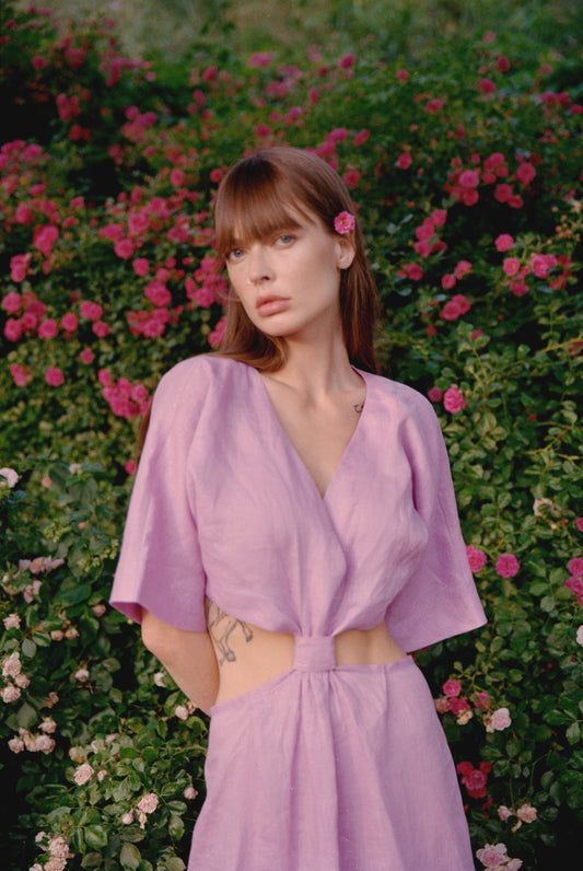 Langes Kleid mit Ausschnitt auf Taille in Lila