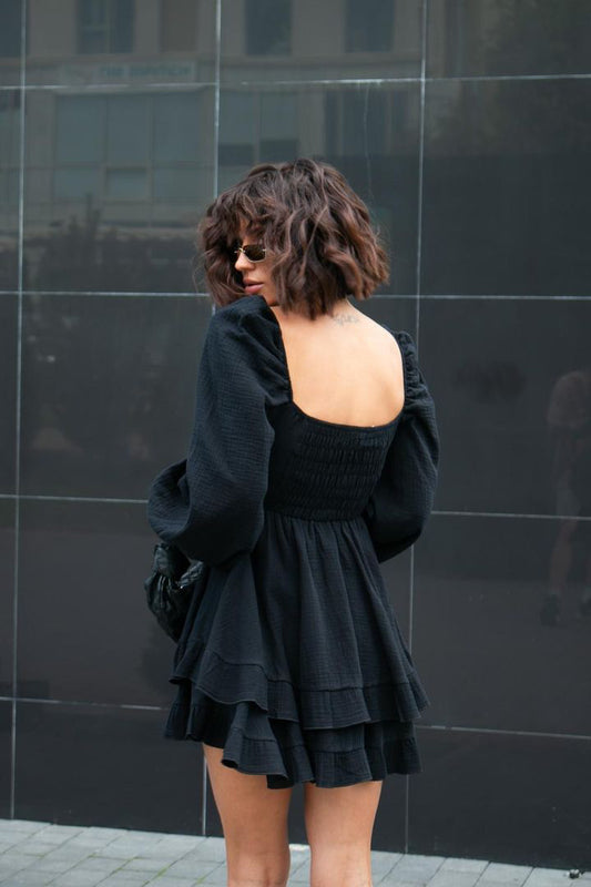 Schwarzes Maxikleid mit Cut-Outs auf Taille