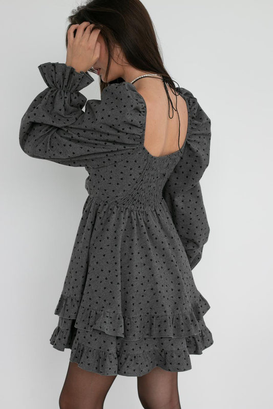 Kurzes A-Linienkleid in Grau mit Herzmuster