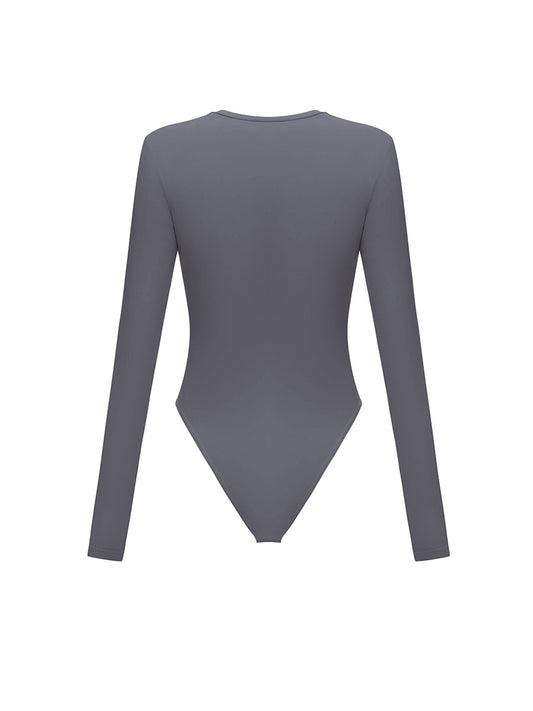Langarmbody mit Print in Grau