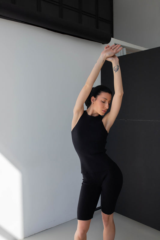 Figurbetontes geripptes Tanktop in Schwarz