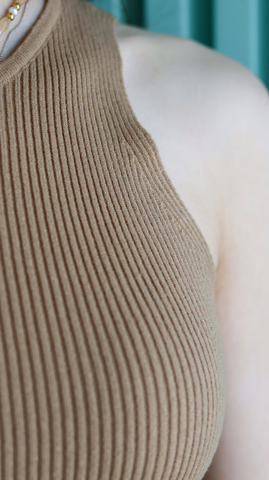 Figurbetontes geripptes Tanktop in Beige