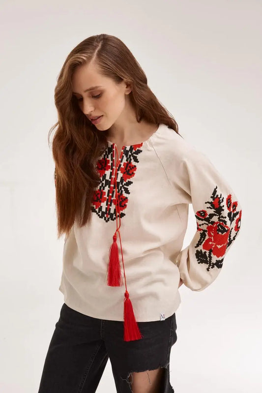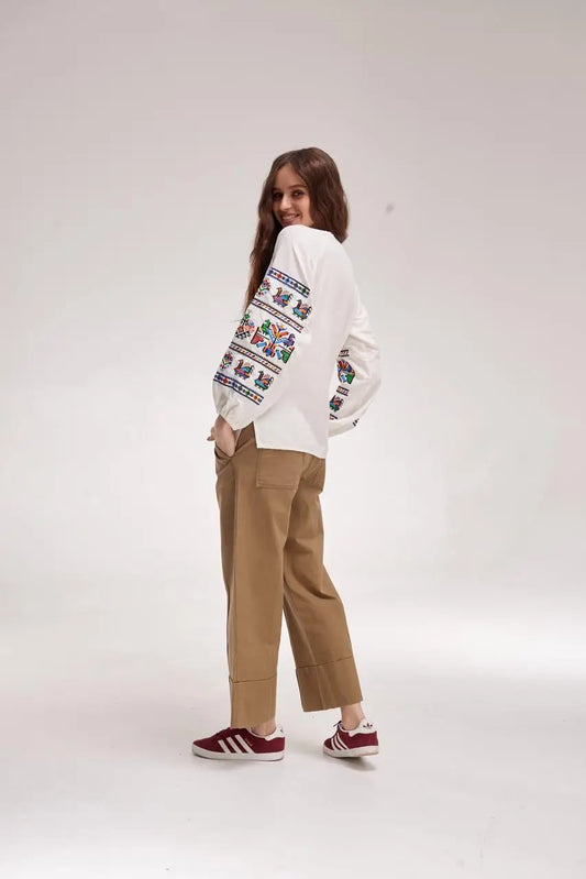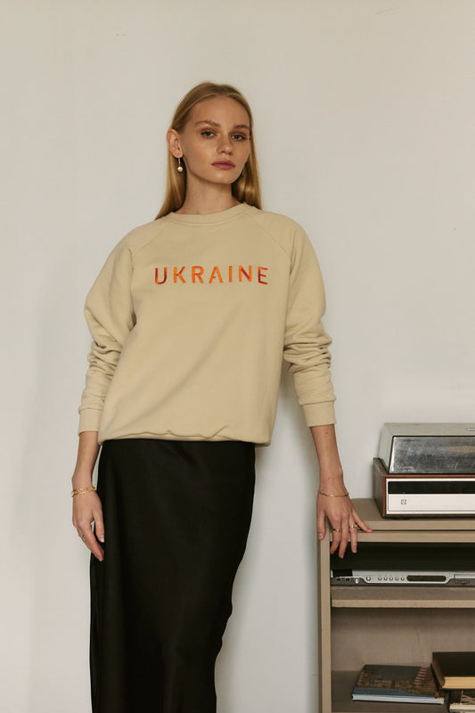 Sweatshirt mit Stickerei "Ukraine" in Beige