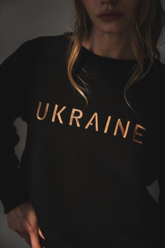 Sweatshirt mit Stickerei "Ukraine" in Schwarz