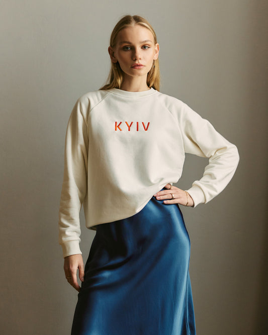 AusverkauftSweatshirt mit Stickerei "Kyiv" in Milchfarbe