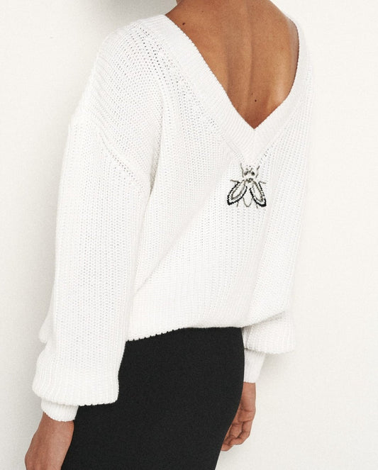 AusverkauftWollpullover mit Strass-Applikation in Schwarz